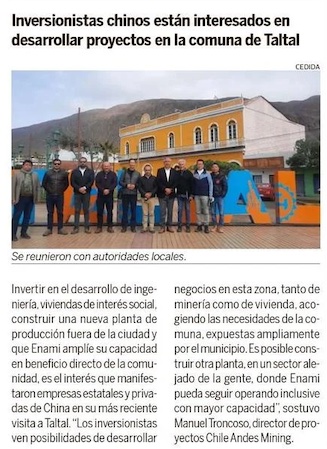 Inversionistas chinos visitaron Taltal - (El Mercurio de Antofagasta)