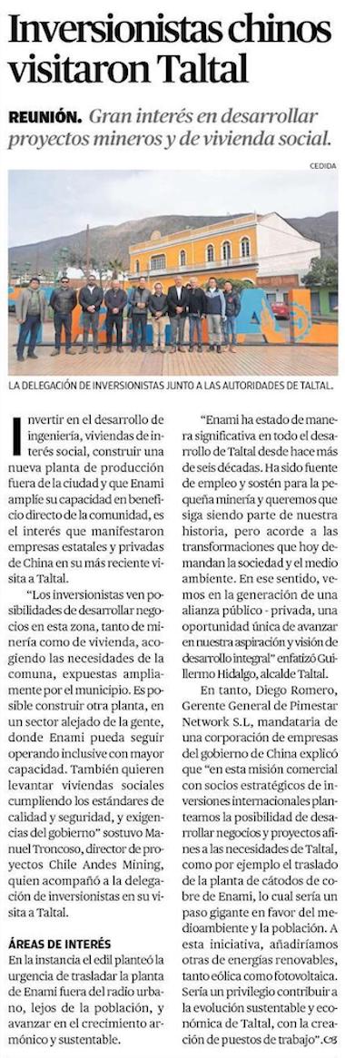 Inversionistas chinos interesados en desarrollar proyectos mineros y de vivienda social en Taltal - (reporteminero)