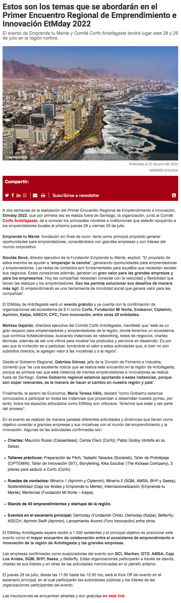 Antofagasta será escenario de encuentro de innovación y emprendimiento - (Estrella de Antofagasta)