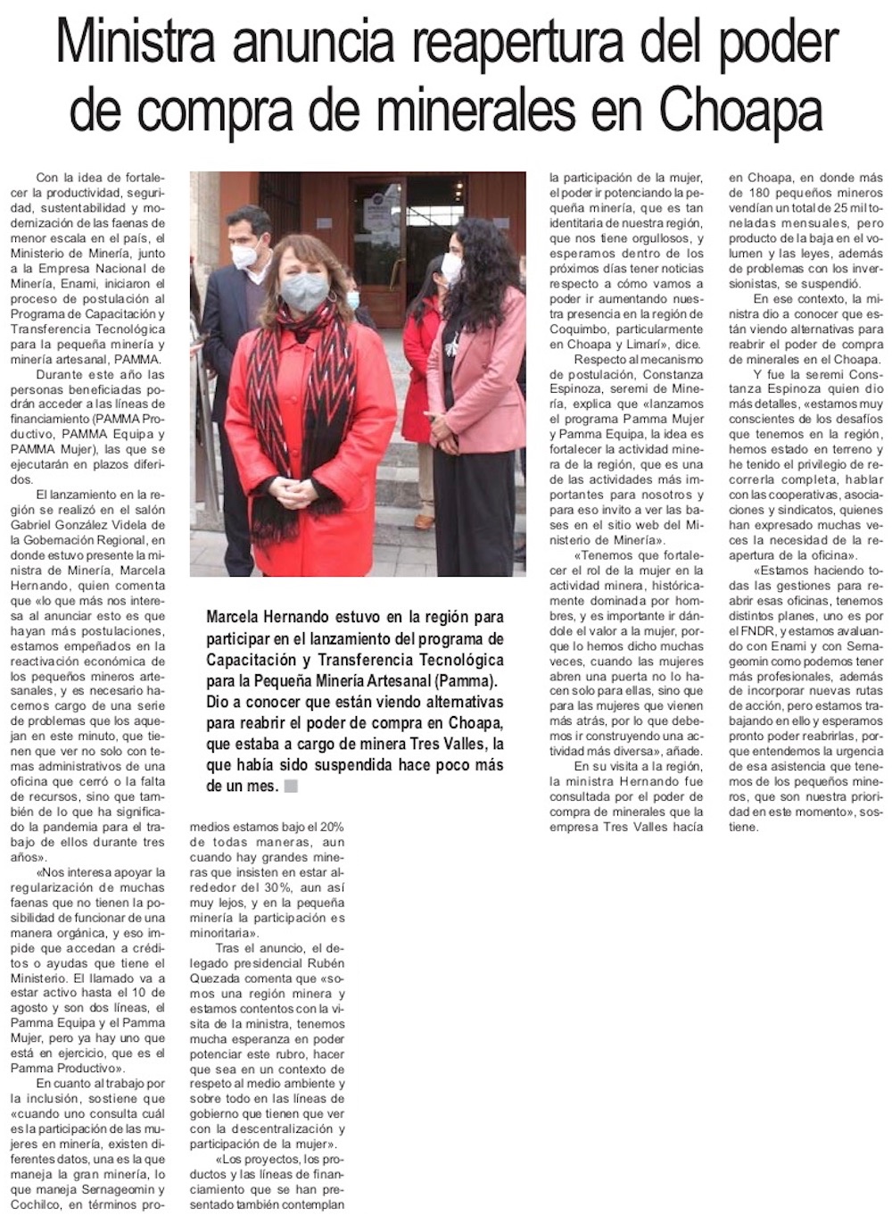 Seremi de Minería reactiva la Mesa Regional de Pequeños Productores - (El Mercurio de Antofagasta)