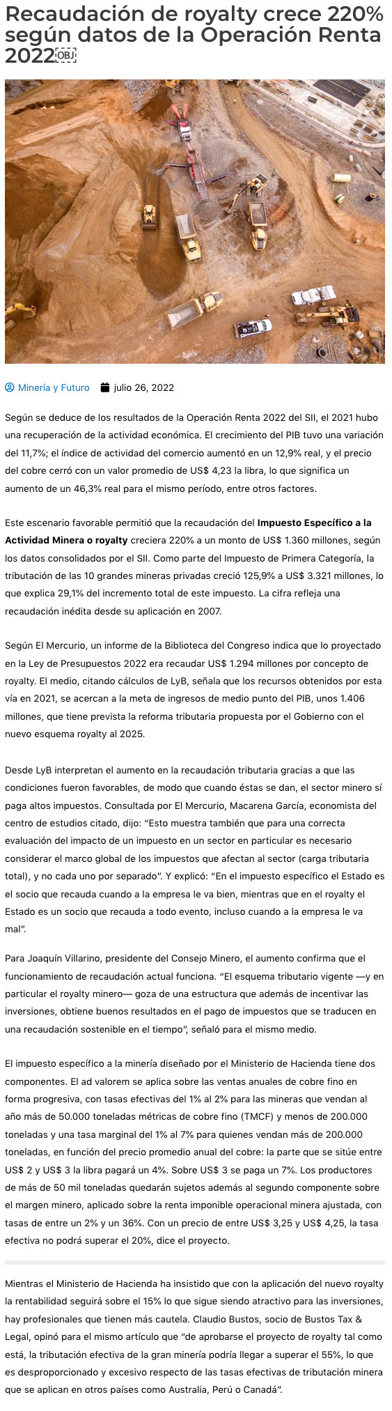 Crecimiento de la recaudación por royalty minero se acercó a meta de la ley que se tramita en el Congreso - (chilemineria.cl)