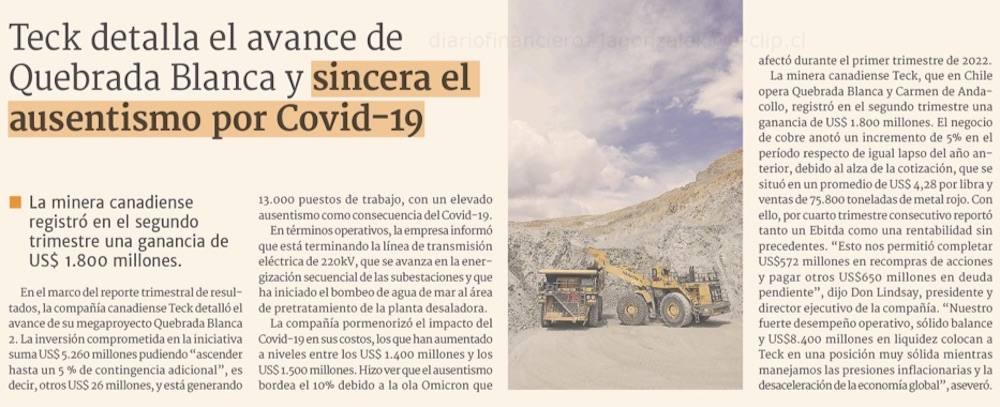 Teck ve posibles retrasos en producción de QB 2 - (El Mercurio de Santiago)