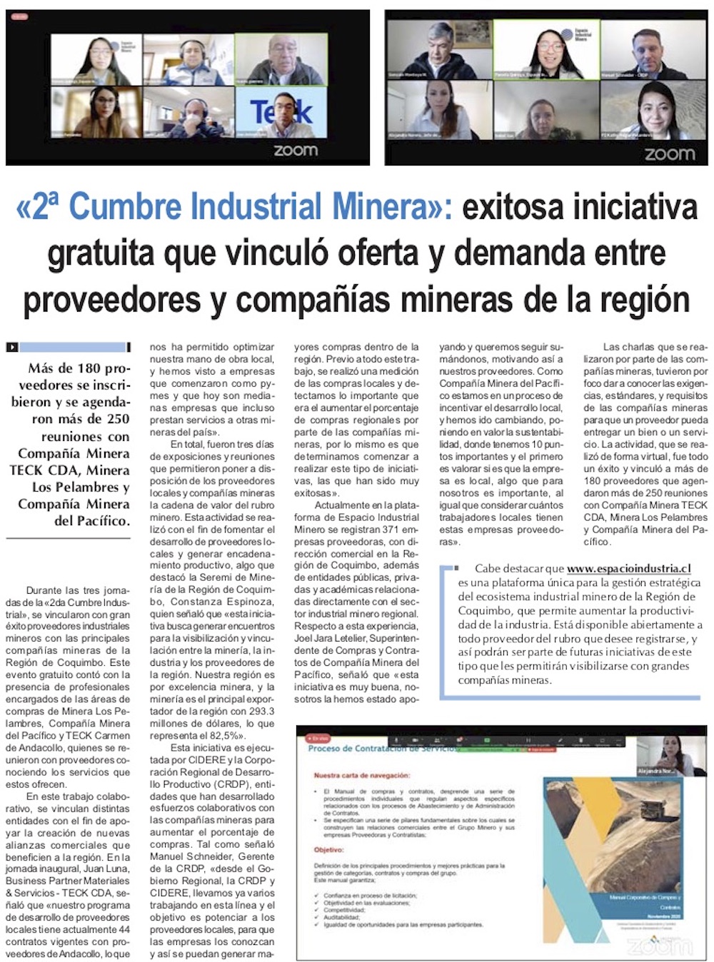 Exitosa iniciativa vinculó oferta y demanda entre proveedores y compañías mineras - (El Día)