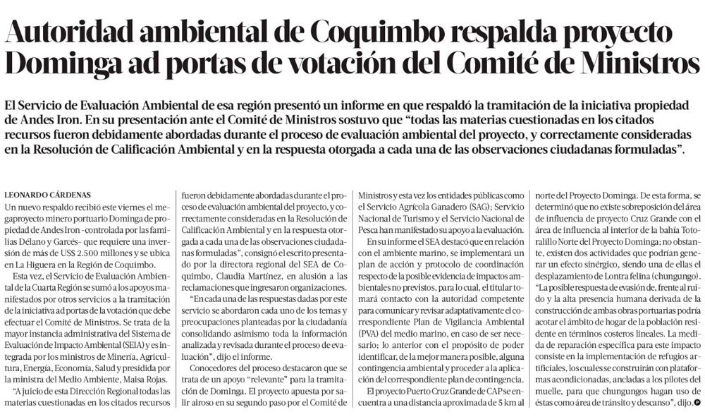 Servicio de Evaluación Ambiental de Coquimbo respalda proyecto Dominga - (El Día)
