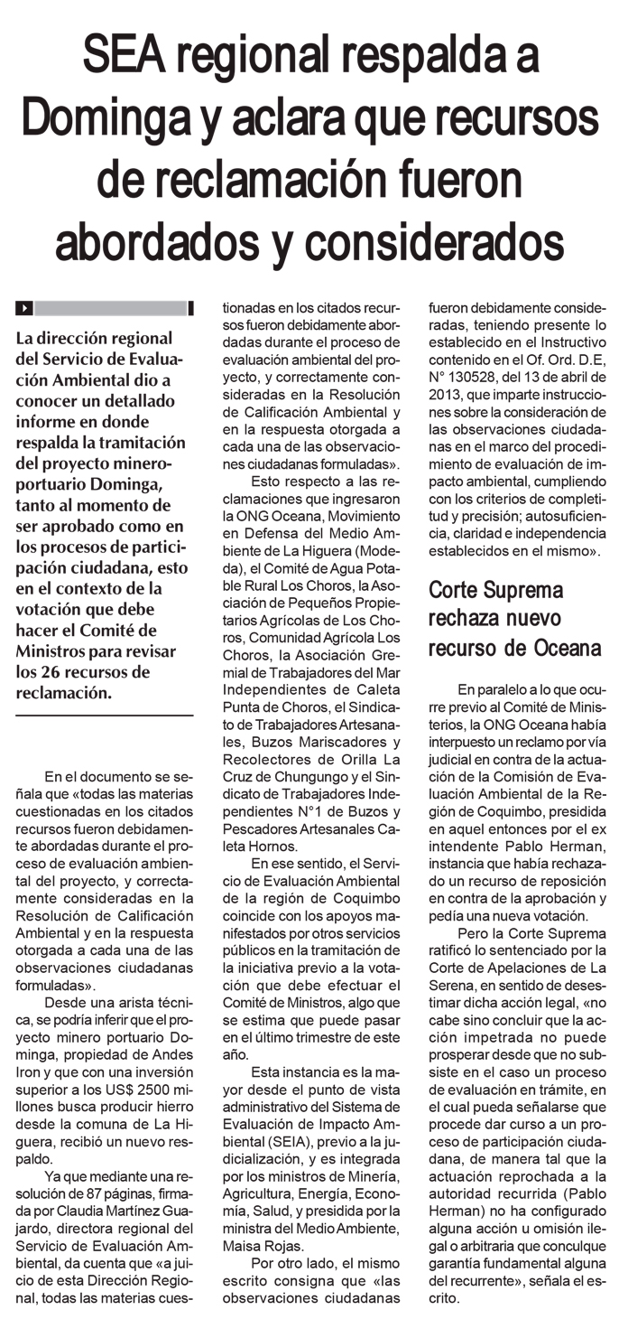 Servicio de Evaluación Ambiental de Coquimbo respalda proyecto Dominga - (El Día)
