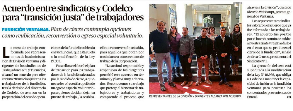 Codelco y trabajadores de Ventanas logran un acuerdo de cara al cierre de la fundición - (Pulso)