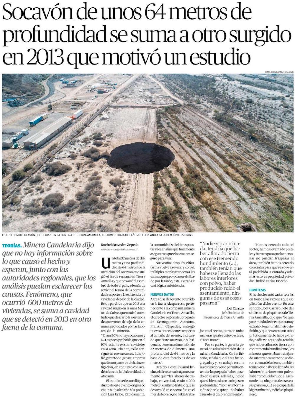 Por qué el socavón que apareció en Tierra Amarilla forma un círculo perfecto - (Las Últimas Noticias)