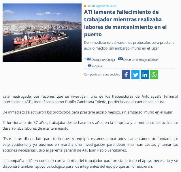 Joven trabajador de ATI sufrió una fatal caída de altura - (Estrella de Antofagasta)
