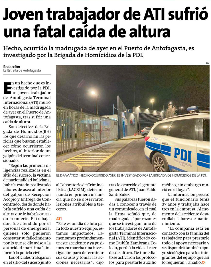 ATI lamenta fallecimiento de trabajador mientras realizaba labores de mantenimiento en el puerto - (mundomaritimo)