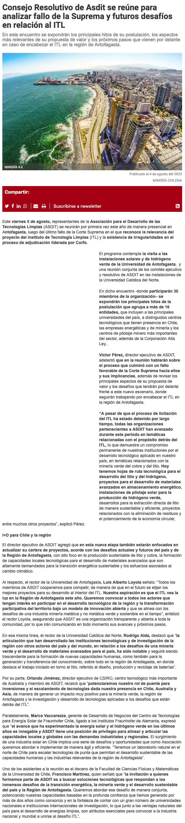 ASDIT se reúne en Antofagasta para analizar fallo de la Corte Suprema y futuros desafíos - (El Mercurio de Antofagasta)
