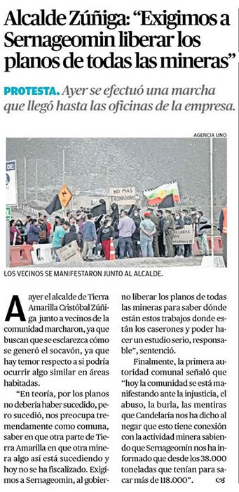 Alcalde Zúñiga "sernageomin nos informó que la Mina Alcaparrosa habría sacado el triple de la cantidad de toneladas establecidas" - (atacamanoticias)