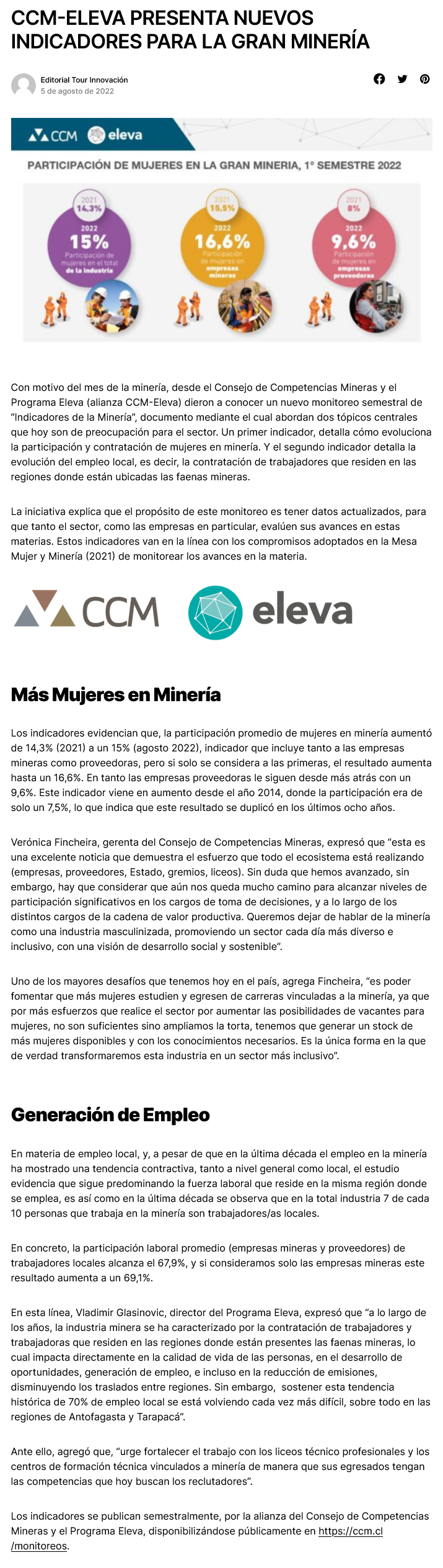 CCM-Eleva presenta nuevos indicadores para la gran minería - (norteyenegia.cl)