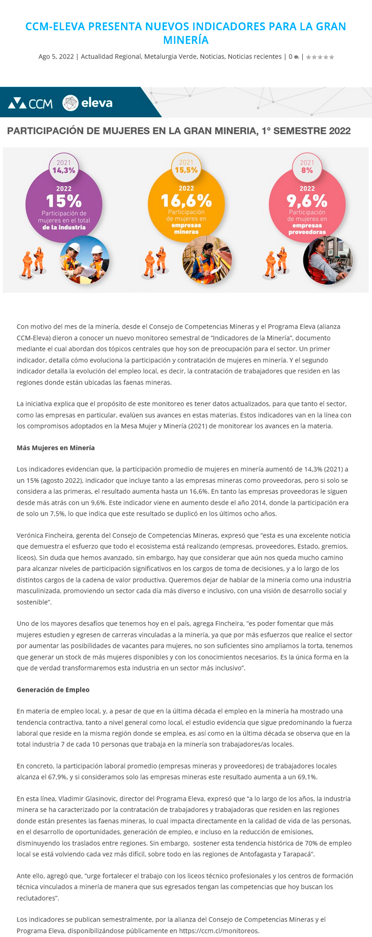 CCM-ELEVA presenta nuevos indicadores para la gran minería - (tourinnovacion.cl)
