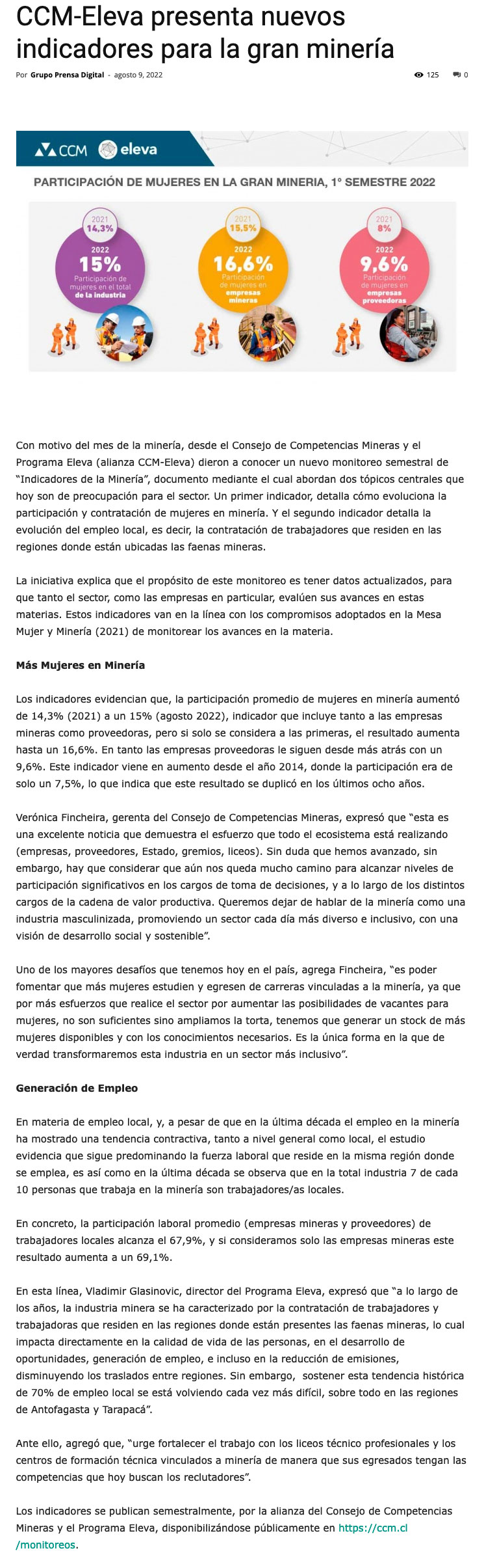 CCM- Eleva presenta nuevos indicadores para la gran minería - (tierramarillano.cl)