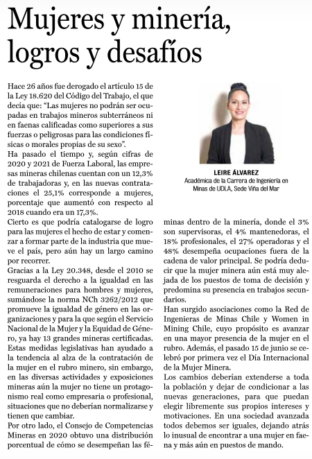 Mujeres y minería: logros y desafíos - (El Mercurio de Antofagasta)