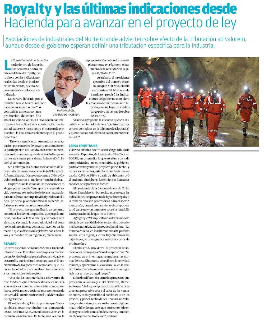 Royalty y las últimas indicaciones desde Hacienda para avanzar en el proyecto de ley - (El Mercurio de Antofagasta)