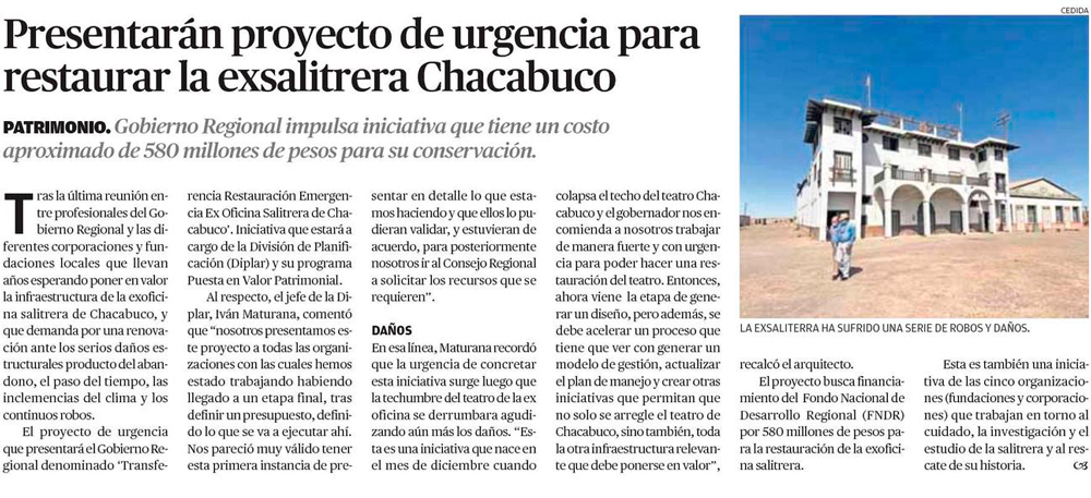 GORE Antofagasta presentará al Consejo Regional proyecto de emergencia para restaurar ex oficina salitrera de Chacabuco - (diarioantofagasta)