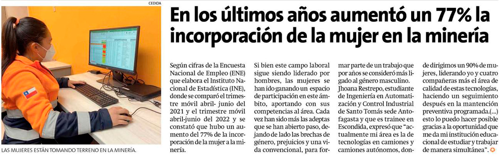 Incorporación de mujeres a la industria minera aumentó un 77,0% en los últimos años - (poderyliderazgo)