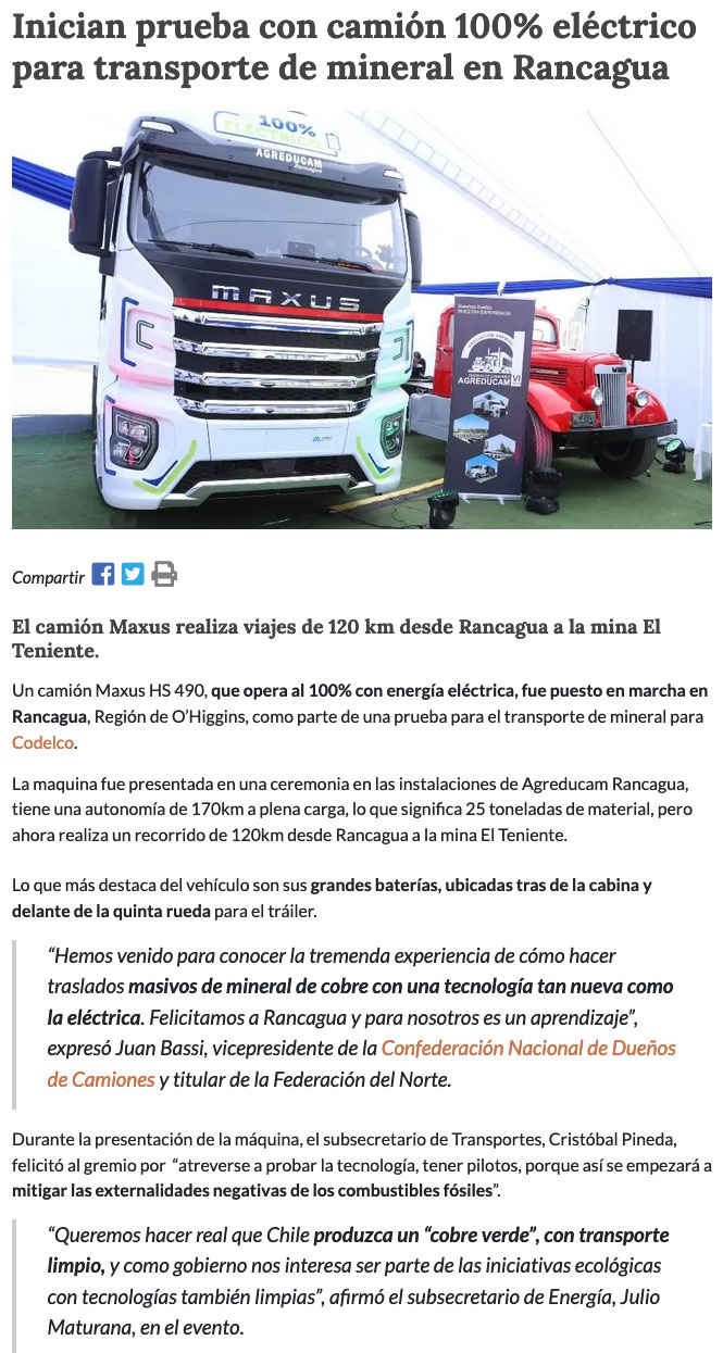 Andes Motor celebra el inicio de la fase de pruebas de tracto camión eléctrico de Maxus en Codelco - (presslatam.cl)
