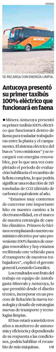 Minera Antucoya estrena primer taxibús 100% eléctrico en faena - (mch.cl)