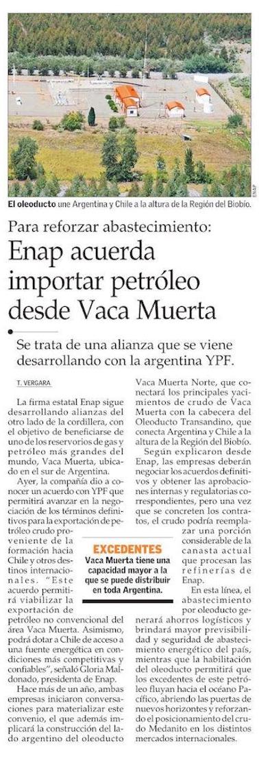 ENAP firma acuerdo con YPF para exportar crudo desde Argentina a Chile y al mundo a través del Pacífico - (emol)