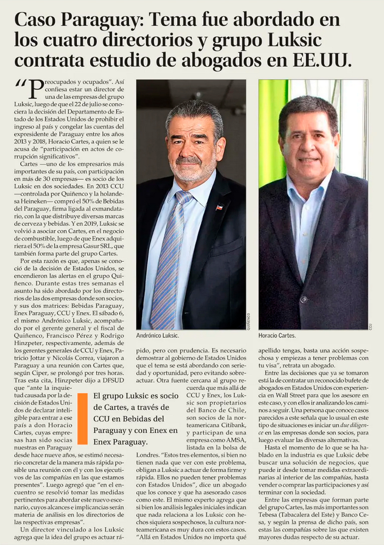 El socio incómodo del grupo Luksic en Paraguay - (Pulso)