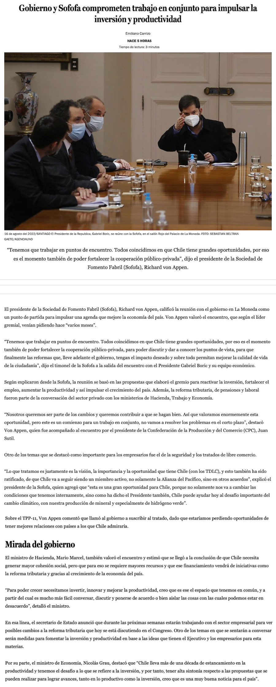 Gobierno creará mesa de trabajo con grandes empresarios para impulsar productividad e inversión - (Pulso)