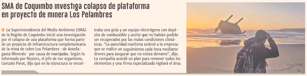 Regulador ambiental chileno investiga colapso de plataforma en proyecto de Antofagasta Minerals - (americaeconomia online)