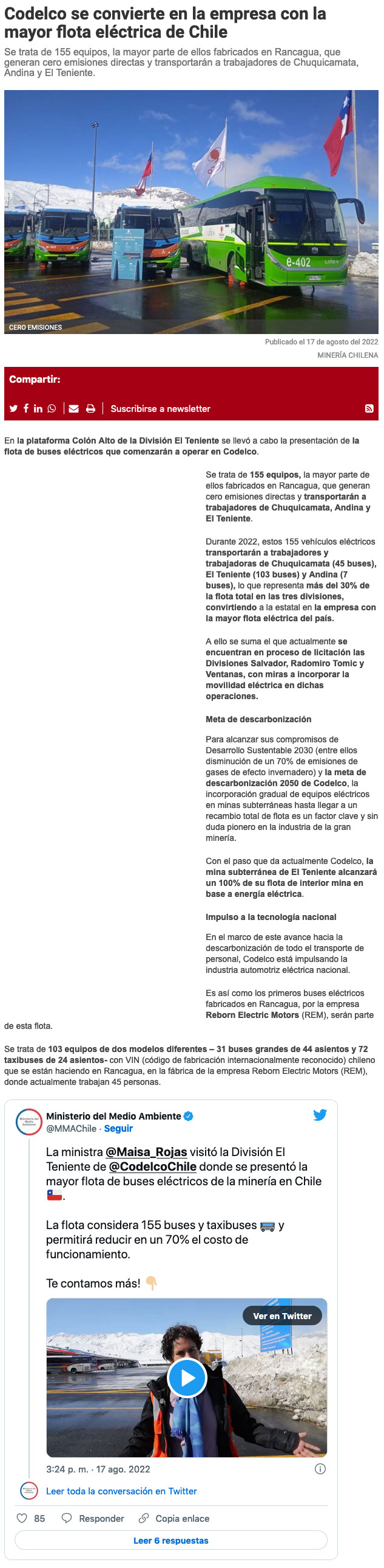 La minera Codelco se convierte en la empresa con la mayor flota eléctrica de Chile - (revistaei.cl)