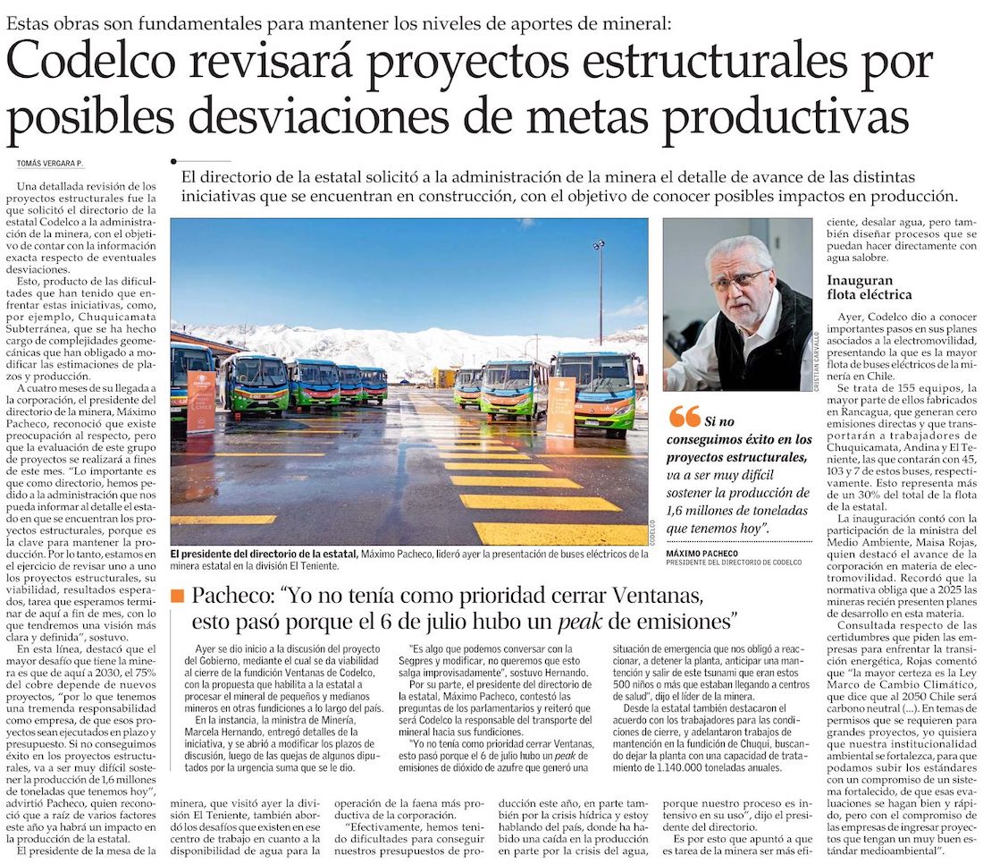 Codelco retomará las operaciones en los proyectos detenidos tras accidentes fatales - (Diario Financiero)