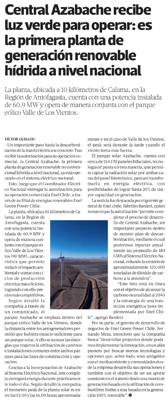 Enel Green Power Chile inicia la operación comercial de Central Azabache - (eldinamo)