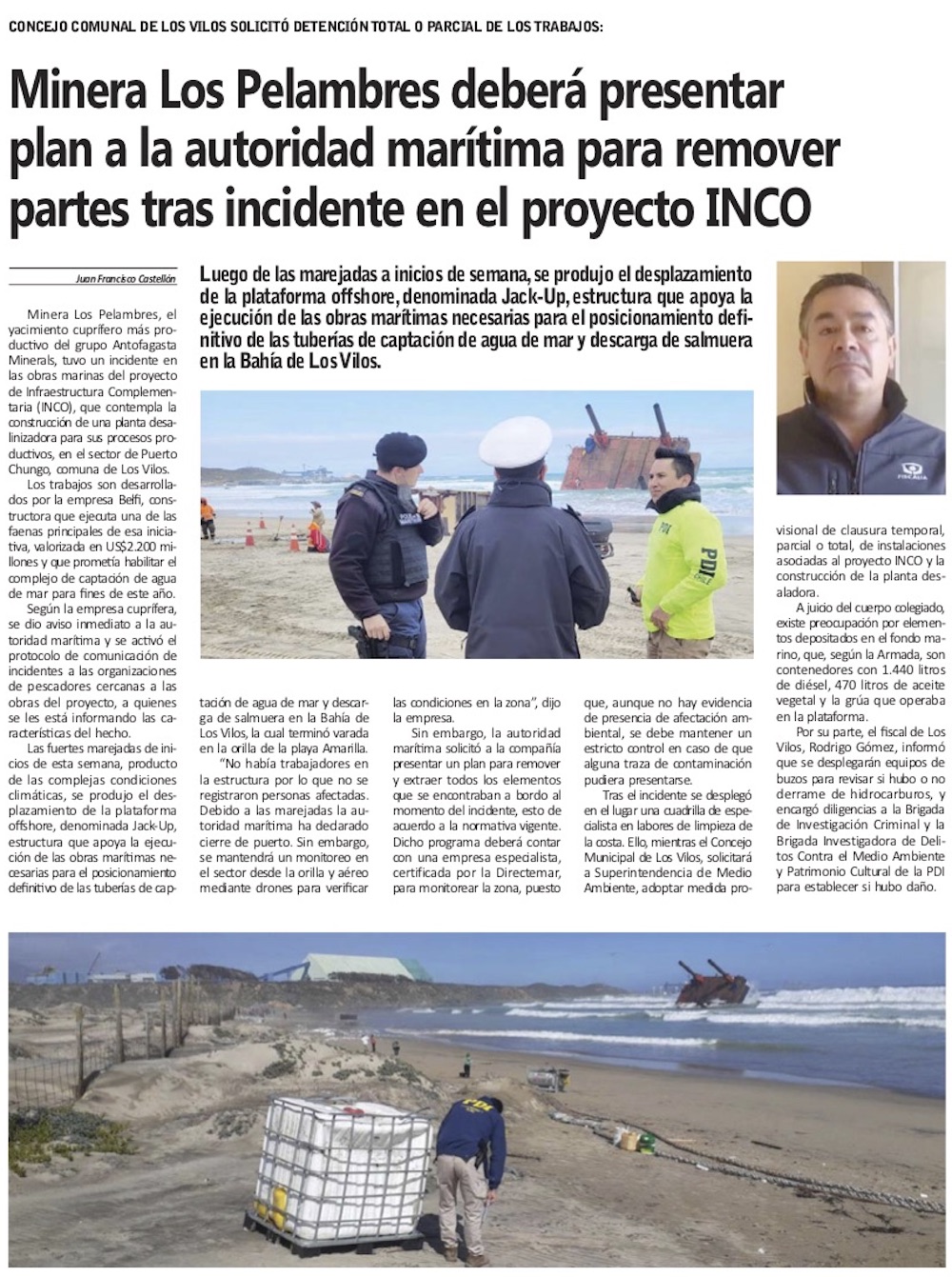 Localizan grúa y generador caídos al mar desde plataforma en Los Vilos - (El Día)