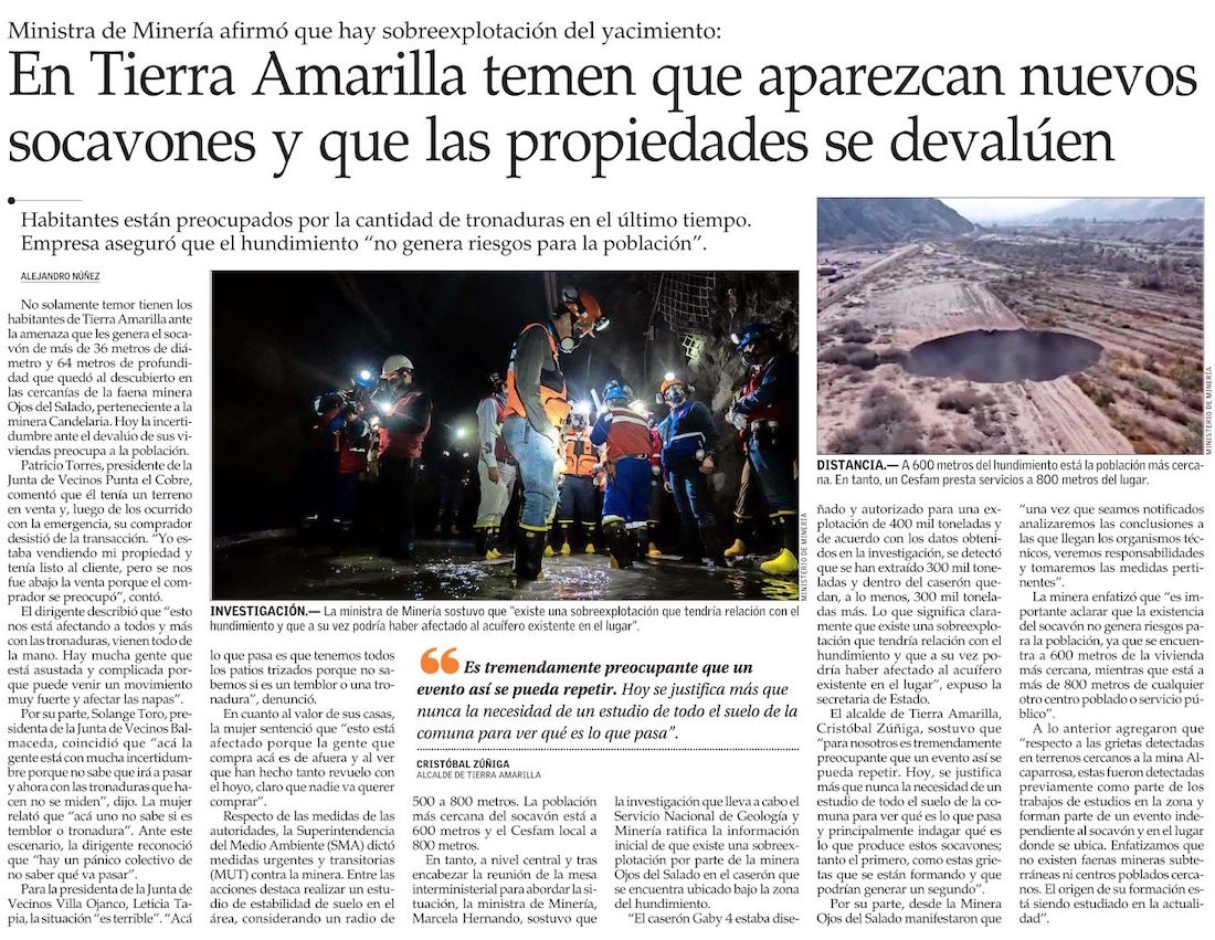 Geólogos e ingenieros de universidad fuera de Atacama harán estudio de socavón - (El Diario de Atacama)