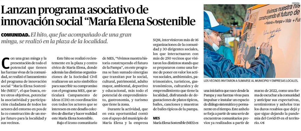Comunidad de María Elena busca mayor sostenibilidad en alianza con minería y energía - (elamerica)
