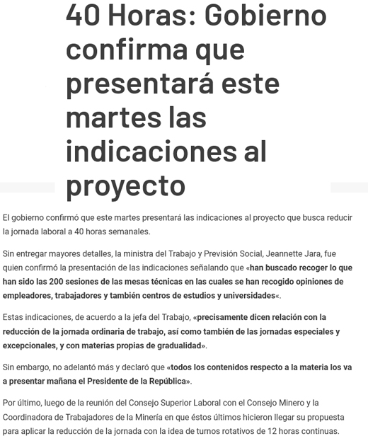 Gobierno entregará indicaciones al proyecto de 40 horas mañana - (La Discusión)