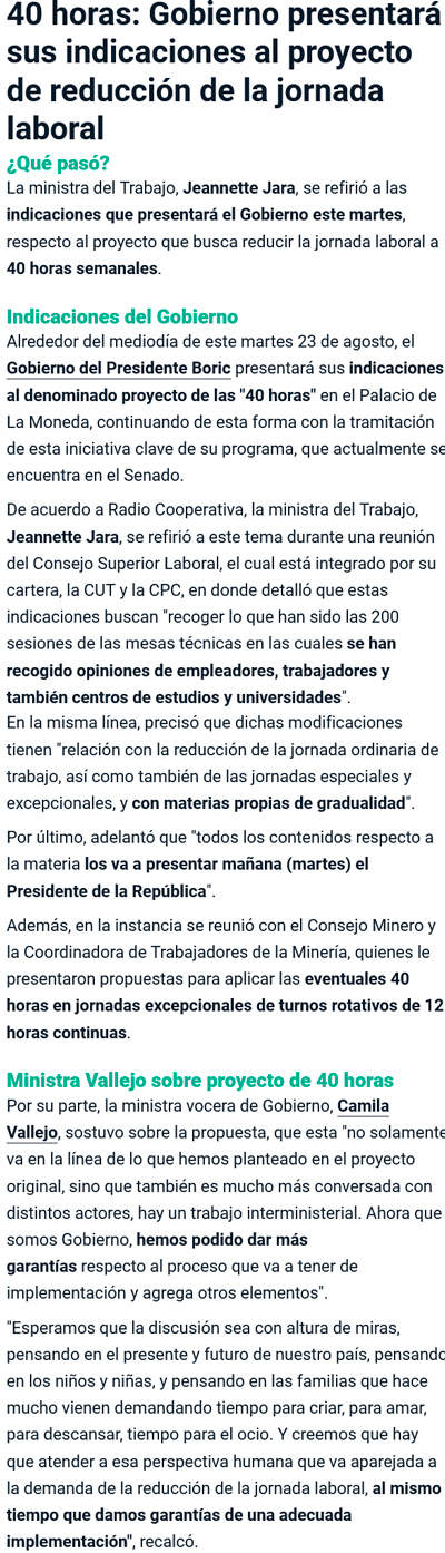 Gobierno entregará indicaciones al proyecto de 40 horas mañana - (La Discusión)