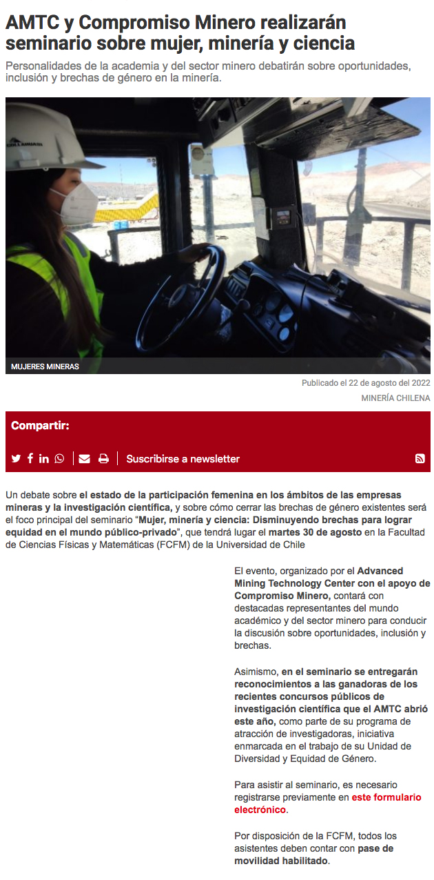 AMTC y Compromiso Minero realizarán seminario sobre mujer, minería y ciencia - (nuevaminería online)