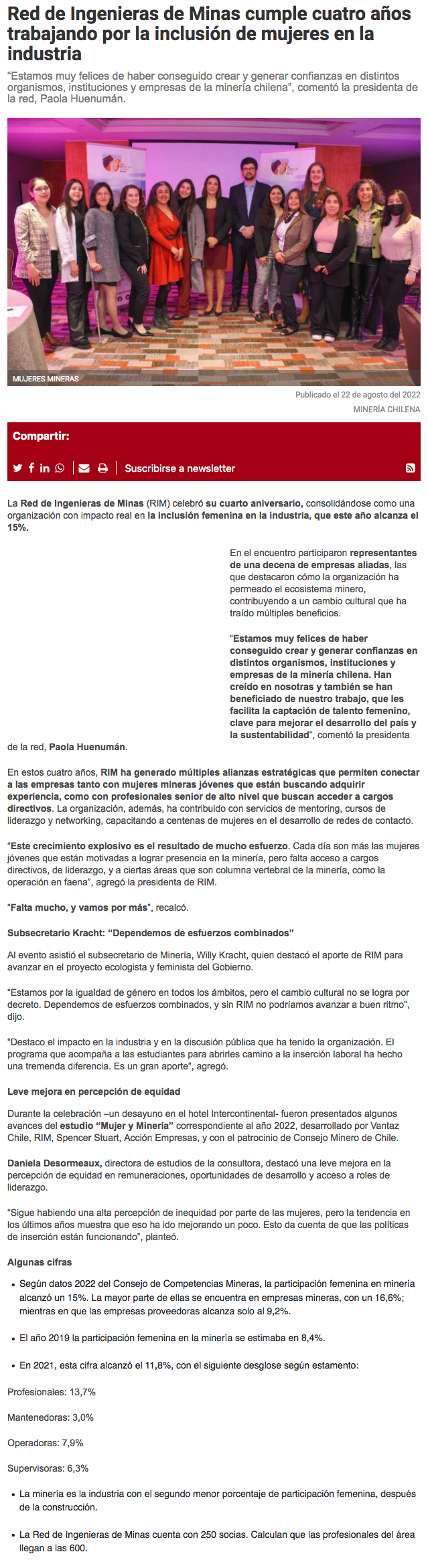 Red de Ingenieras de Minas cumple cuatro años trabajando por la inclusión de mujeres en la industria - (norteyenegia.cl)