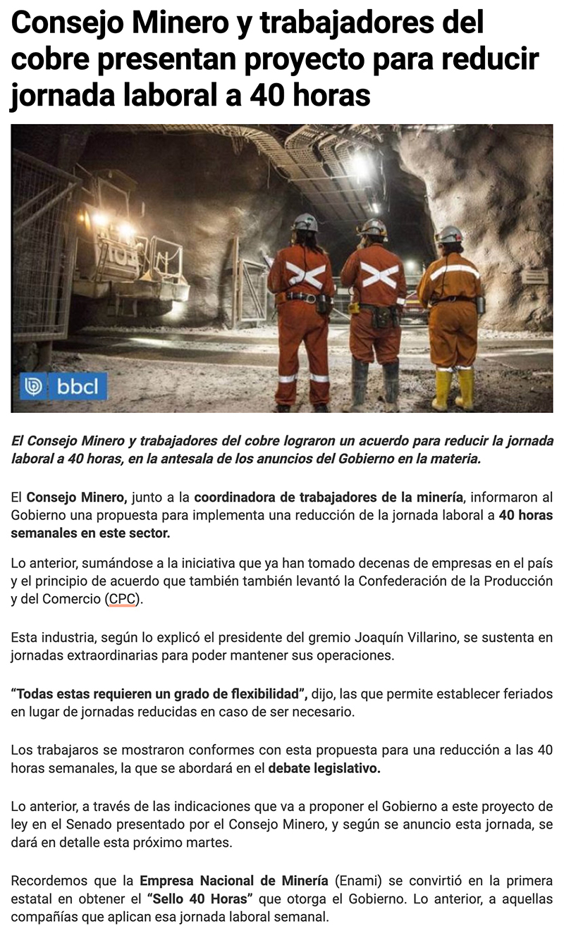“40 horas”: Consejo Minero presenta propuesta consensuada con trabajadores para no afectar continuidad operacional - (redimin)