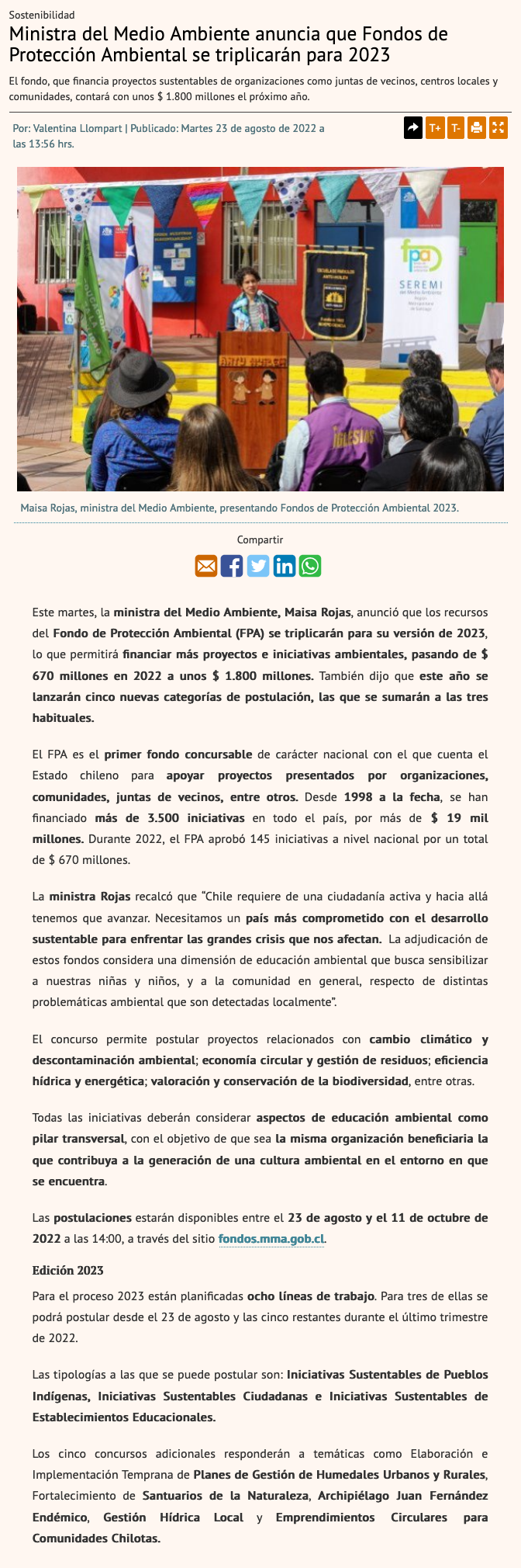 Abren postulaciones al Fondo de Protección Ambiental: recursos se triplicarán para 2023 - (induambiente.cl)