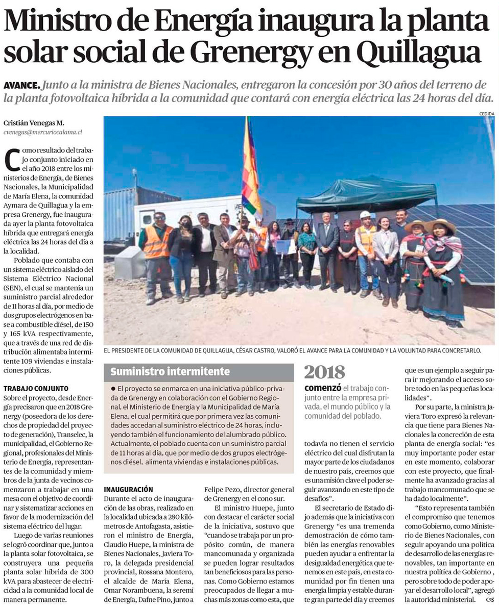 Ministros de Energía y Bienes Nacionales inauguran la planta solar de Grenergy en Quillagua - (calamaenlinea.cl)