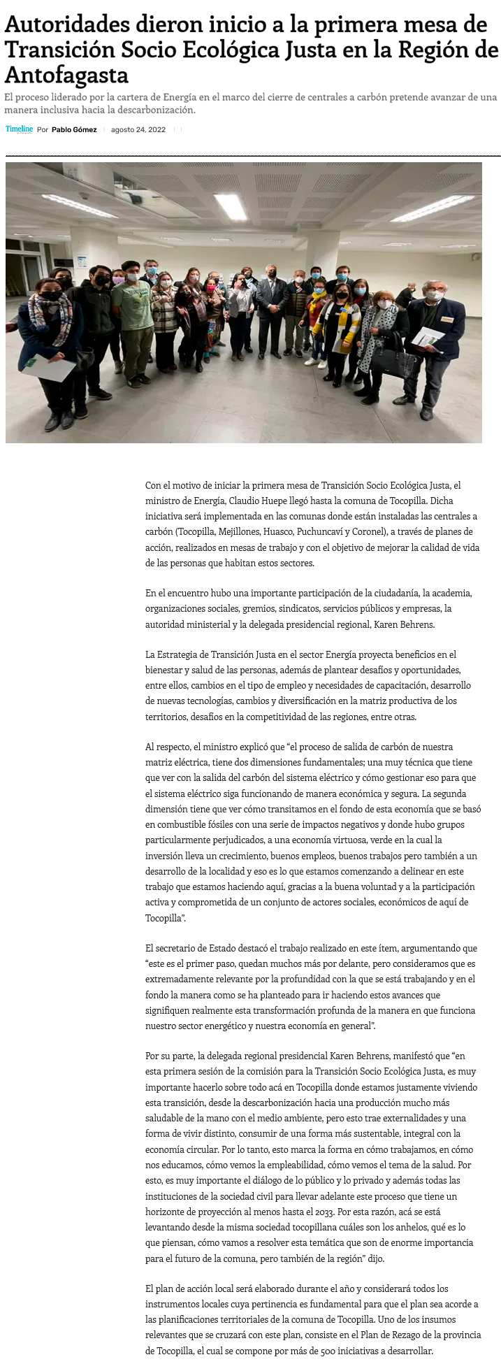 Inician la primera Mesa de Transición Socio Ecológica Justa en la Región de Antofagasta - (El Mercurio de Calama)