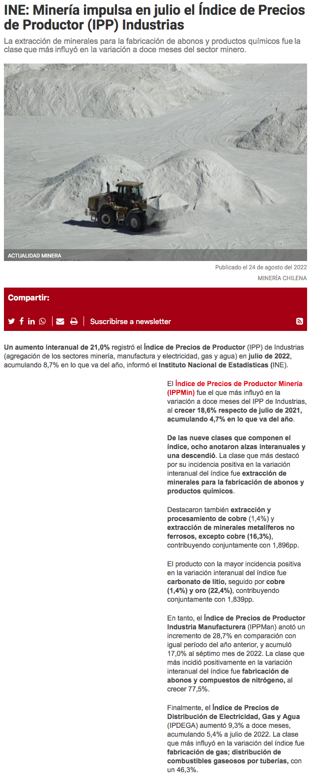 Precios al productor aumentaron 21% en julio, un alza menor a la de junio - (Diario Financiero)