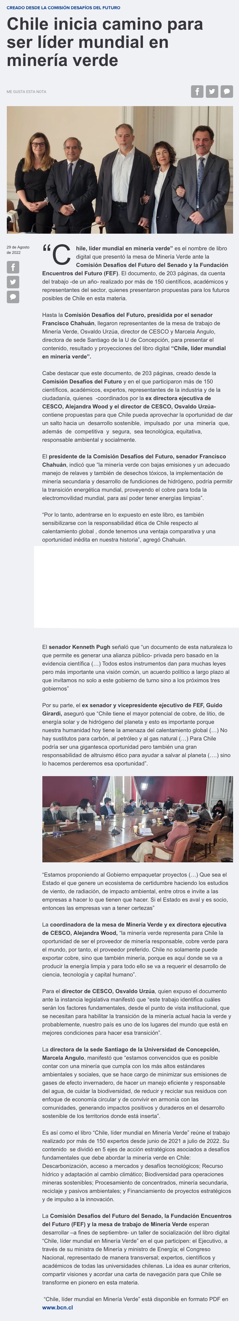 Presentan libro “Chile, líder mundial en minería verde” - (El Mostrador)
