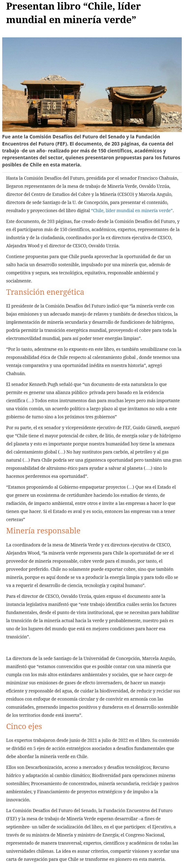 Chile inicia camino para ser líder mundial en minería verde - (13.cl)