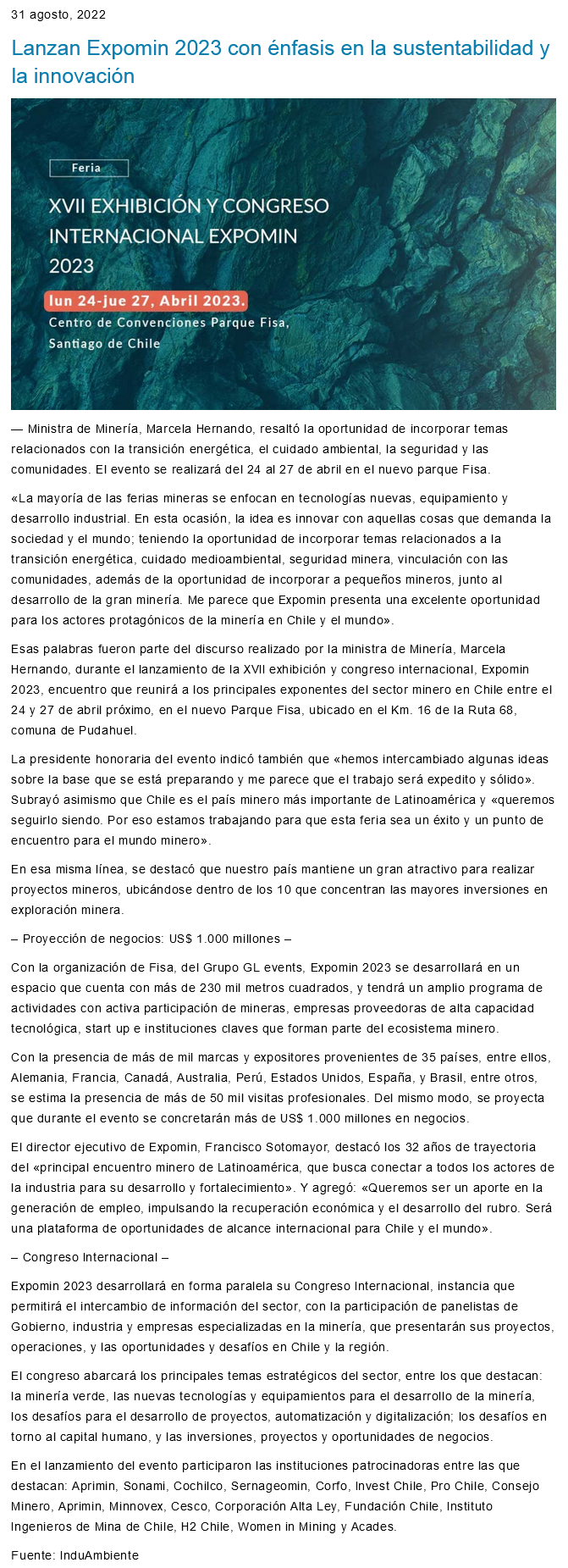 Miércoles, 31 de Agosto de 2022