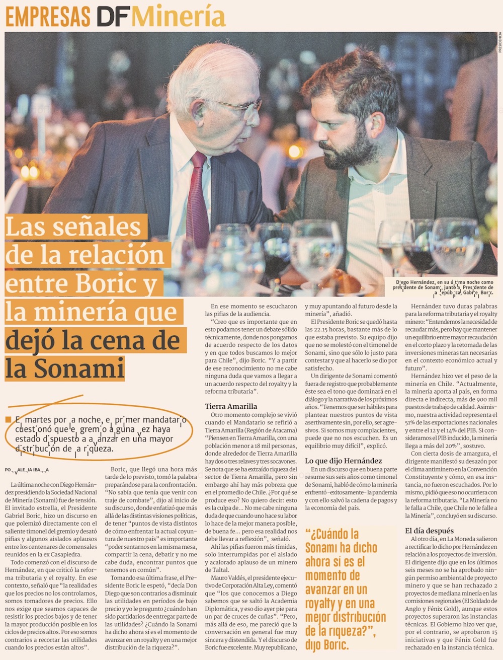 Tensa participación del Pdte. Boric en cena de la Sonami y polémica entrevista en Times - (CNN Chile)