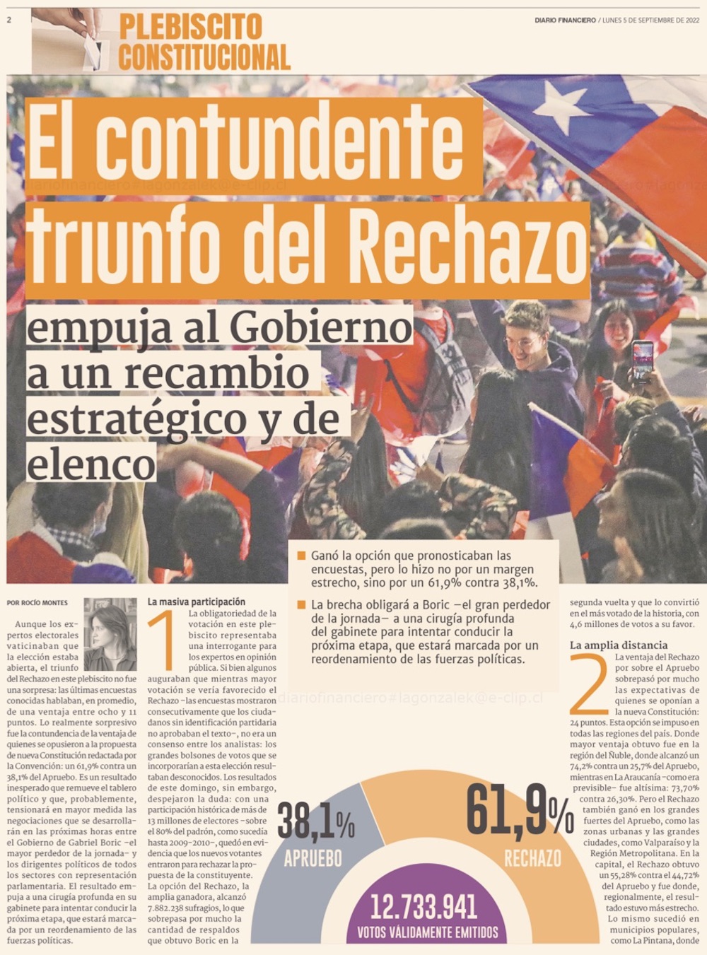 Boric asume derrota, convoca a diálogos y anuncia pronto cambio de gabinete - (Diario Financiero)