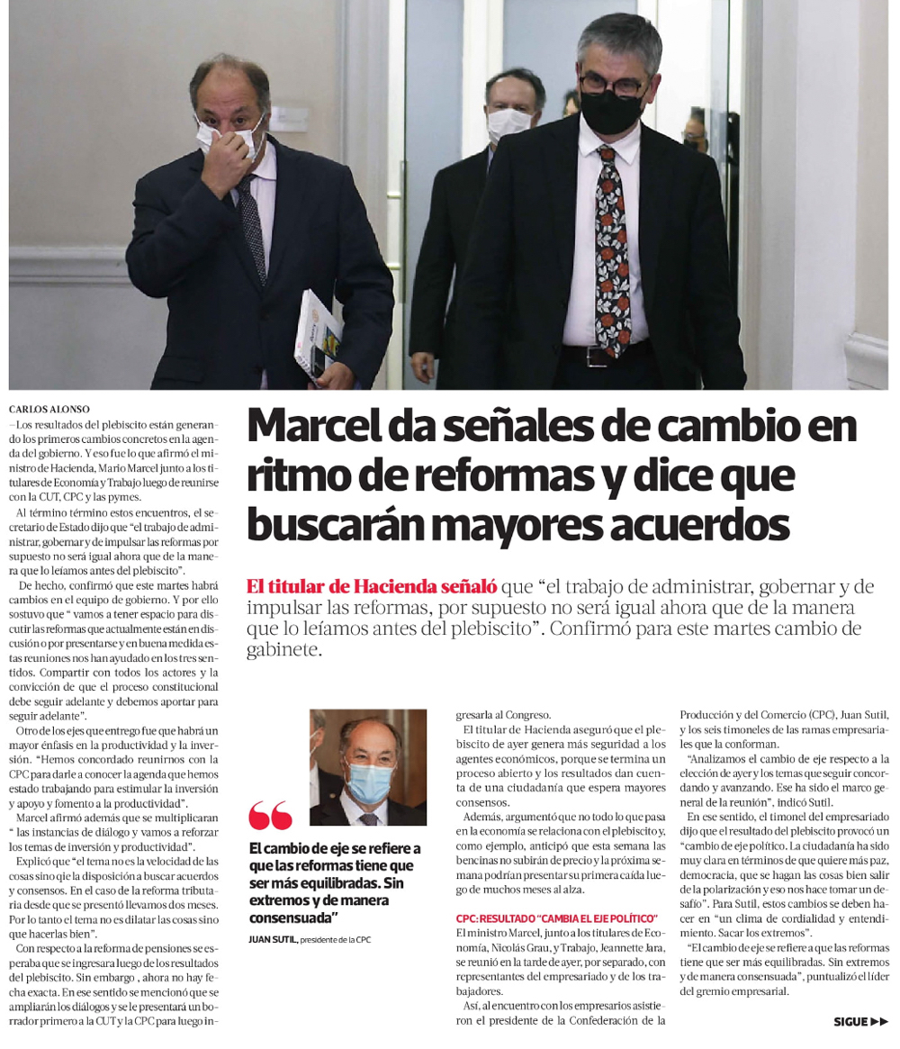 Marcel dice que tras el plebiscito se prevé una menor incertidumbre y adelanta que habrá un cambio en la manera de impulsar las reformas - (El Mercurio de Santiago)