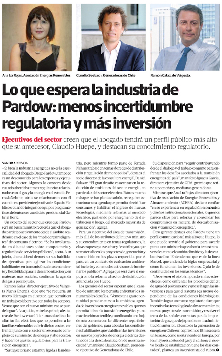 Diego Pardow, del segundo Piso al Ministerio de Energía - (Pulso)